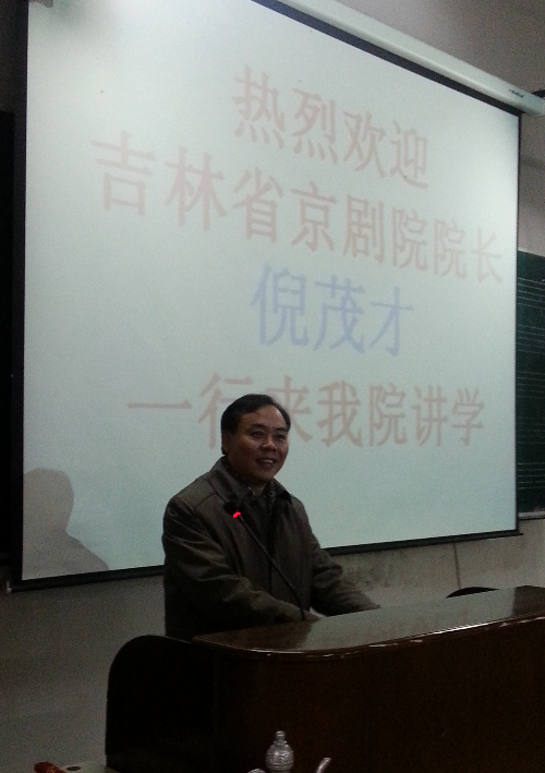 2013年11月13日,我院邀请吉林省戏曲剧院党委书记兼院长倪茂才和青年京剧演员吴迪为师生作了题为《德育京剧》的学术报告。倪茂才先生是国家一级演员,京剧“高派”传人,“梅花奖”、上海“白玉兰”主角榜首奖获得者,享受国务院政府特殊津贴,文化部优秀专家,中宣部全国宣传文化系统“四个一批”人才奖,吉林省政协委员,中国戏曲家协会理事,吉林省文联副主席。