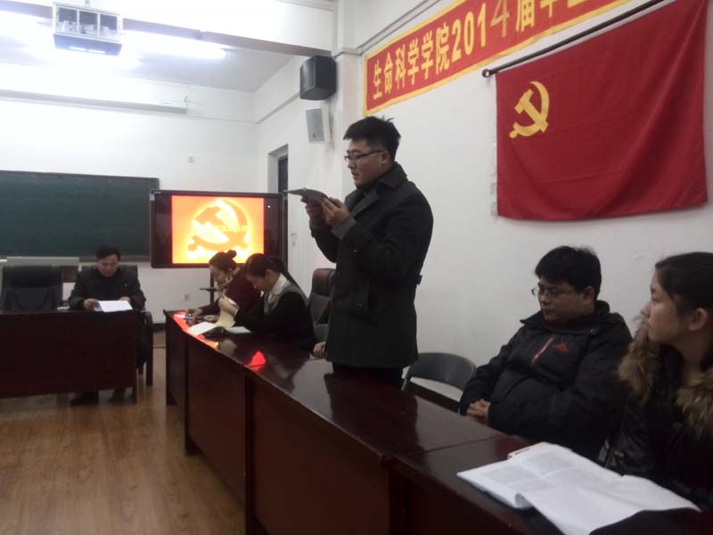 2014年12月30日,生命科学学院教师党支部全体党员在第七教学楼群 生命科学学院党员活动室召开党的知识迎新暨新党员转正会议。会议由教师党支部书记倪福太老师主持。