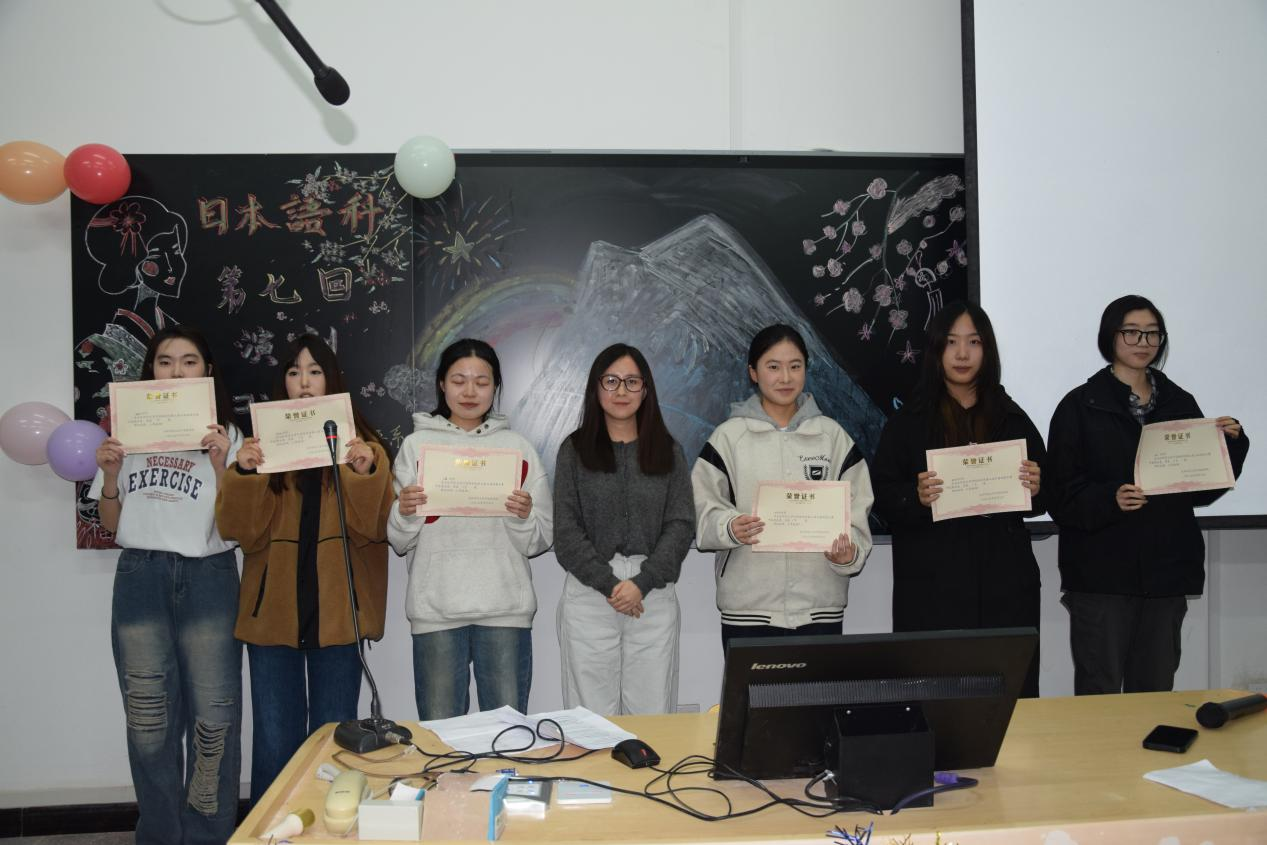 在所有小组完成表演后,由日语系的老师们为获奖小组颁发荣誉证书,现场掌声雷动,欢呼不断。随后,仓片老师代表评委发表总结讲话,对所有参赛同学的表现给予了高度评价,认为本届戏剧大赛无论是剧本内容、舞台表现,还是语言运用与团队配合,都展现了极高的水平与热情。