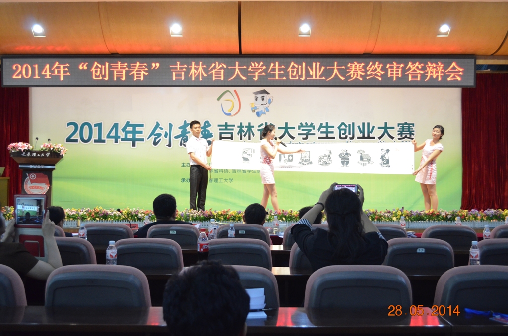 近日,2014年“创青春”吉林省大学生创业大赛在长春理工大学举行。我院赵楠楠等同学的作品《东北特色剪纸产业开发及服务》荣获创业计划赛金奖。 同时入围2014年吉林省“创青春”青年创新创业项目推介会,向社会各界展示了我院大学生的科技创新成果。