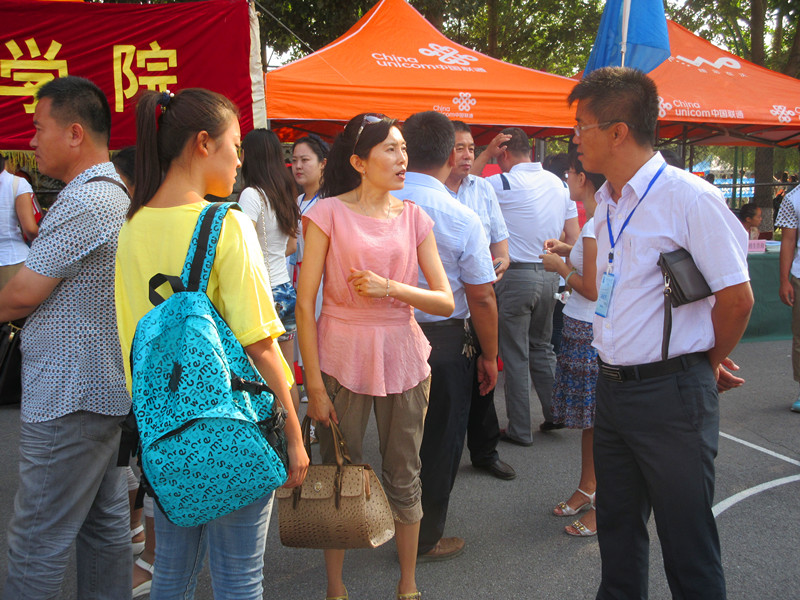 上午8点,迎新工作进入高潮阶段,报到场地早已排起了长长的队伍。场地中间则是学院的展板,学生干部依次向家长介绍学院的师资力量、学生活动以及毕业生的就业去向,使家长对学院的了解更为深入。一位家长在参观展板时说:“看到学院里老师的学历都很高,同学们都多才多艺,我很高兴,希望我的孩子在这个环境中也能有所进步。”随后,学生干部不辞辛苦地将新生送到寝室,一路上向他们介绍学校各方面的情况,从而使新同学尽早地熟悉校园。